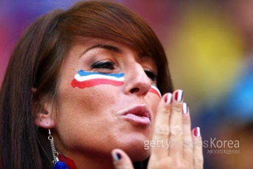 1일(한국시간) 브라질 브라질리아의 에스타디오 나시오날 데 브라질리아 경기장에서 열린 2014 브라질 월드컵 16강전 프랑스-나이지리아 경기에서 팬들이 열띤 응원을 하고 있다.