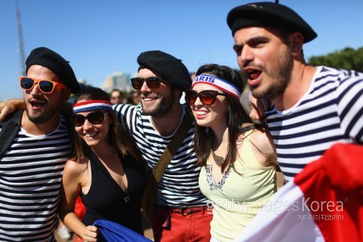 1일(한국시간) 브라질 브라질리아의 에스타디오 나시오날 데 브라질리아 경기장에서 열린 2014 브라질 월드컵 16강전 프랑스-나이지리아 경기에서 팬들이 열띤 응원을 하고 있다.