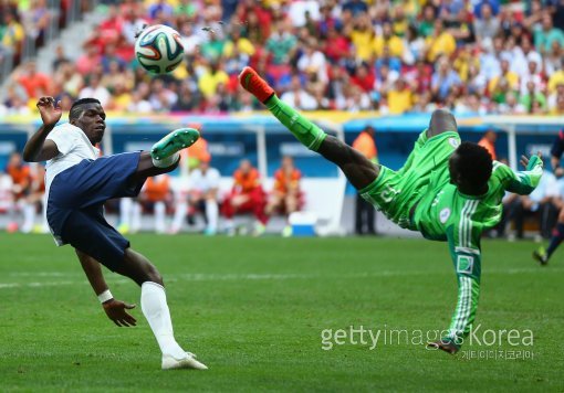 1일(한국시간) 브라질 브라질리아의 에스타디오 나시오날 데 브라질리아 경기장에서 열린 2014 브라질 월드컵 16강전 프랑스-나이지리아 경기 장면.