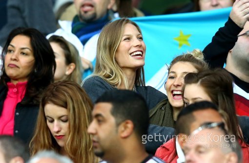 1일(한국시간) 브라질 포르투 알레그리의 에스타디오 베이라-리오 경기장에서 열린 2014 브라질 월드컵 16강전 독일-알제리 경기. 독일 대표팀 바스티안 슈바인슈타이거의 여자친구인 사라 브랜드너가 경기장을 찾은 모습. 사라 브랜드너는 독일 출신의 모델이다.