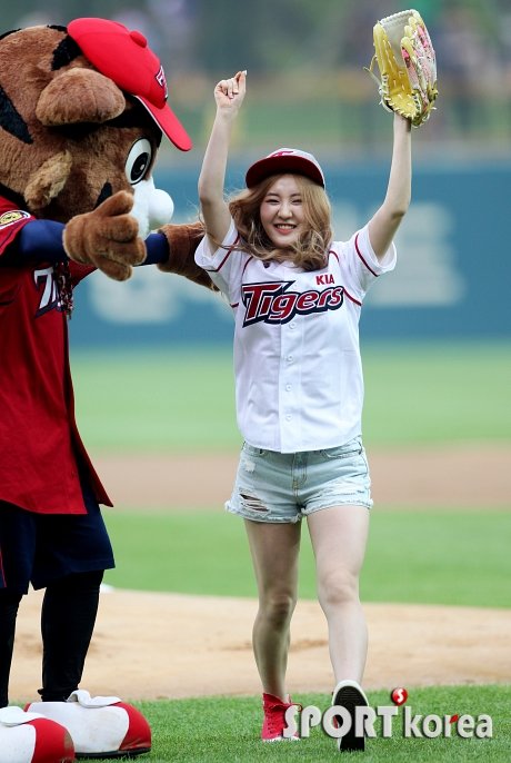 1일 오후 광주 기아 챔피언스필드에서 열린 ‘2014 프로야구’ KIA 타이거즈 대 두산 베어스의 경기에 앞서 KIA 열혈팬 가수 메건리가 멋진 시구를 선보이고 있다.