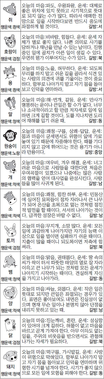 금일복권, 주식, 부동산매입 행운의 띠: 소,뱀,닭(토요일:호랑이,말,개)