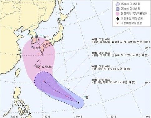 한편, 제주지방은 장마전선의 영향으로 5일 늦은 밤부터 비가 내릴 전망이다.