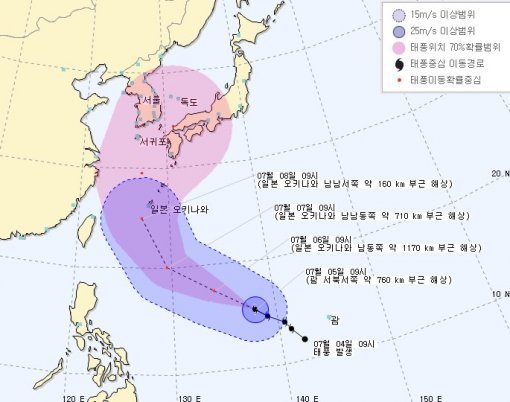 너구리는 당분간 서북서진해 8일 9시경 일본 오키나와 남남서쪽 약 160km 부근 해상까지 북상할 전망이지만 경로를 변경해 한반도에 영향을 미칠지 여부는 아직 알 수 없다.