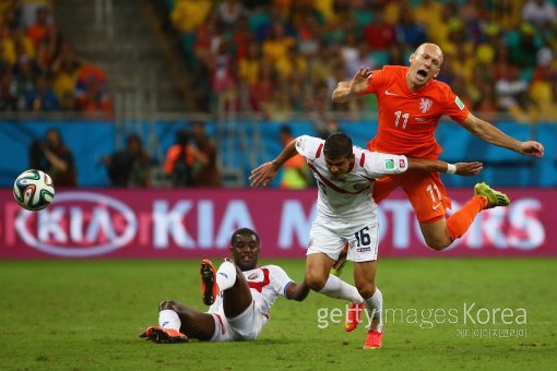 6일(한국시간) 브라질 사우바도르의 아레나 폰테 노바 경기장에서 열린 2014 브라질 월드컵 8강전 네덜란드-코스타리카 경기 장면.