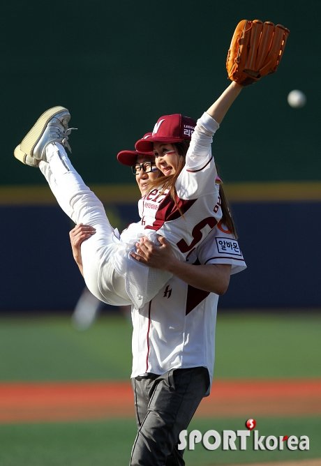 박준금은 시구를 한 뒤 지상렬의 품에 안긴 채 퇴장해 눈길을 끌었다.