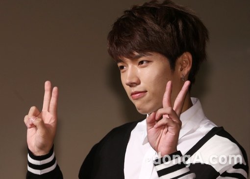 그룹 인피니트의 남우현이 7일 오후 서울 영등포구 당산동 그랜드컨벤션센터에서 열린 KBS2TV 새 금요 판타지 성장드라마 '하이스쿨:러브온' 제작발표회에 참석해 포토타임을 하고 있다.