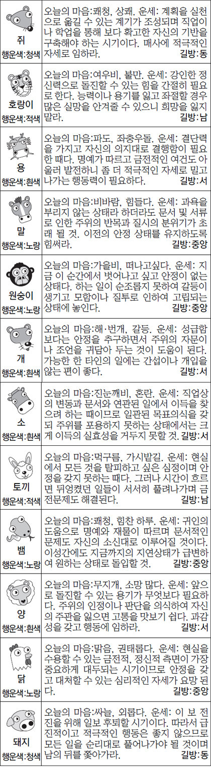 금일 주식, 부동산 매도 행운의 띠: 호랑이,말,개