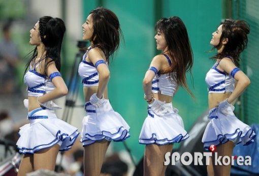8일 대구 시민구장에서 열린 ‘2014프로야구’ 삼성 라이온즈와 롯데 자이언츠의 경기에서 삼성 치어리더가 관중들 앞에서 공연을 펼치고 있다.