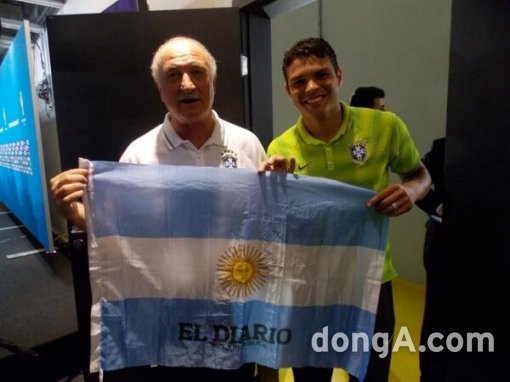 루이스 펠리페 스콜라리 브라질 대표팀 감독과 주장 티아고 실바가 이웃 아르헨티나를 응원한 사진이 포착돼 화제다.