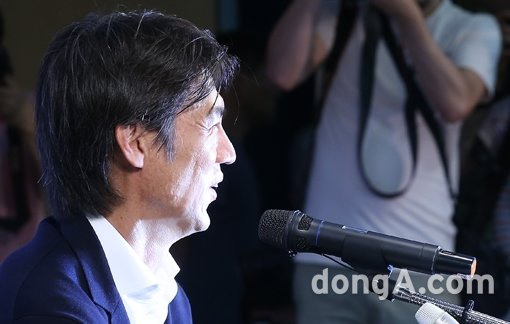홍명보 감독이 10일 오전 서울시 신문로 축구협회에서 사퇴 결정 기자회견을 하고 있다.