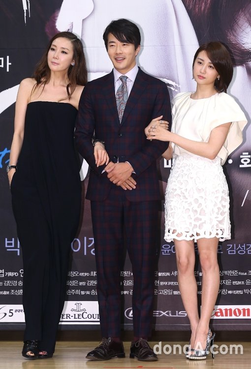 배우 최지우(왼쪽부터), 권상우, 박하선이 10일 오후 서울시 양천구 목동 SBS사옥에서 열린 새 월화드라마 ‘유혹’ 제작발표회에서 포토타임을 하고 있다.