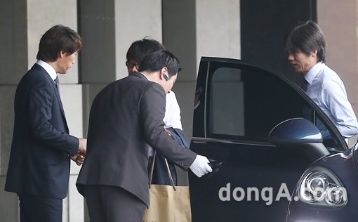 홍명보 전 축구대표팀 감독이 12일 오전 서울시 동대문구 신라호텔에서 열린 이청용(26 볼턴 원더러스) 결혼식에 참석하고 있다.