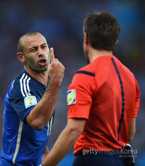 아르헨티나의 하비에르 마스체라노(FC 바르셀로나)가 경기 도중 주심에게 뭔가 손짓하고 있다.
