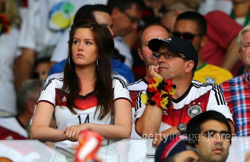 14일(한국시간) 브라질 리우데자네이루의 에스타디오 두 마라카낭 경기장에서 열린 2014 브라질 월드컵 결승전 독일과 아르헨티나의 경기. 독일 대표팀 율리안 드락슬러(샬케 04)의 여자친구인 레나(오른쪽)가 경기장을 찾은 모습.