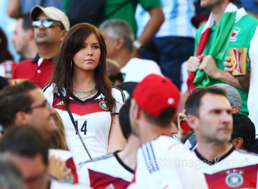 14일(한국시간) 브라질 리우데자네이루의 에스타디오 두 마라카낭 경기장에서 열린 2014 브라질 월드컵 결승전 독일과 아르헨티나의 경기에서 독일 대표팀 율리안 드락슬러(샬케 04)의 여자친구인 레나가 관중석에서 경기를 보고 있다.