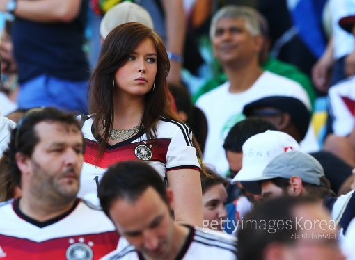 14일(한국시간) 브라질 리우데자네이루의 에스타디오 두 마라카낭 경기장에서 열린 2014 브라질 월드컵 결승전 독일과 아르헨티나의 경기에서 독일 대표팀 율리안 드락슬러(샬케 04)의 여자친구인 레나가 관중석에서 경기를 보고 있다.