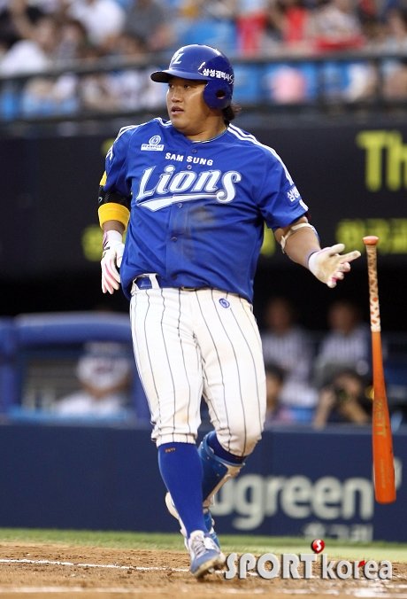 16일 오후 서울 잠실야구장에서 열린 ‘2014 한국 야쿠르트 세븐 프로야구’ LG 트윈스와 삼성 라이온즈의 경기 3회초 2사 1루 상황에서 삼성 박석민이 2루타를 친 후 한바퀴 회전하며 1루로 출루하고 있다.
