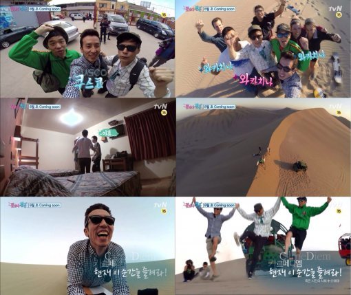모래 사막에서 미끄럼을 타며 잇몸 미소를 선보이는 유희열, 서로의 손을 맞잡고 모래 사막을 가르는 세 사람. 40대 꽃청춘의 배낭여행은 젊은 혈기, 라오스 여행팀과는 또 다른 웃음과 감동을 선사할 것으로 기대된나.