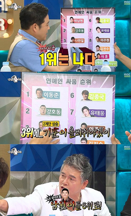 이동준은 16일 오후 방송된 MBC ‘황금어장 라디오스타’에 출연해 자신이 생각하는 연예인 싸움 서열을 매겼다.