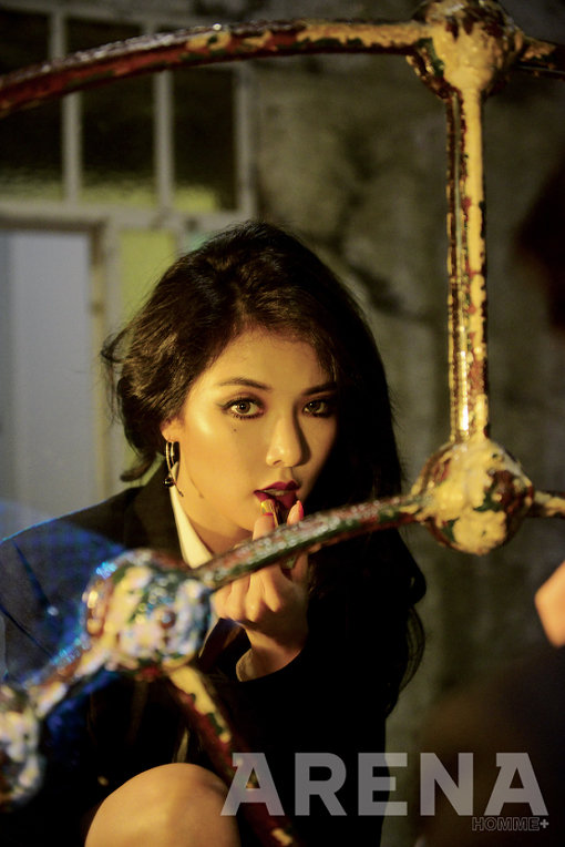 남성지 아레나옴므플러스와 함께 진행한 화보 속 현아는 팜므파탈적인 매력과 화려한 모습 이면에 감춰진 외롭고 쓸쓸한 모습을 동시에 표현했다.