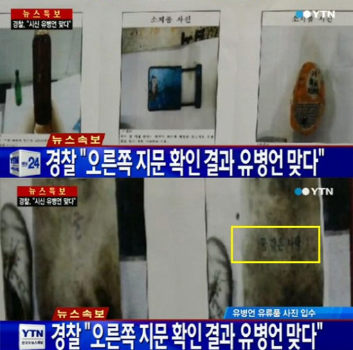 경찰은 지문 확인 경위에 대해 심하게 부패해 변사자 지문을 채취하기 곤란했으나 냉동실 안치 후 열 가열법을 이용해 3차례에 걸쳐 지문 채취를 시도, 변사자 오른쪽 집게손가락 지문 1점을 채취해 검색한 결과 유씨의 지문으로 최종 확인됐다고 밝혔다.