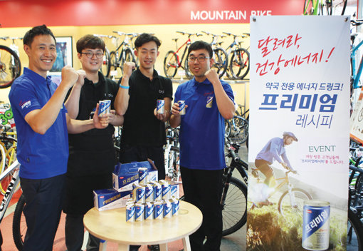 한미약품의 약국전용 에너지드링크 ‘프리미엄레시피’가 자전거 마니아들을 찾아간다. 약국 영업마케팅 전문회사 ‘온라인팜’(대표이사 남궁광)은 자전거 전문매장 ‘바이클로’와 함께 방문객을 대상으로 ‘프리미엄레시피 한 캔 더’ 프로모션을 전개한다고 23일 밝혔다.