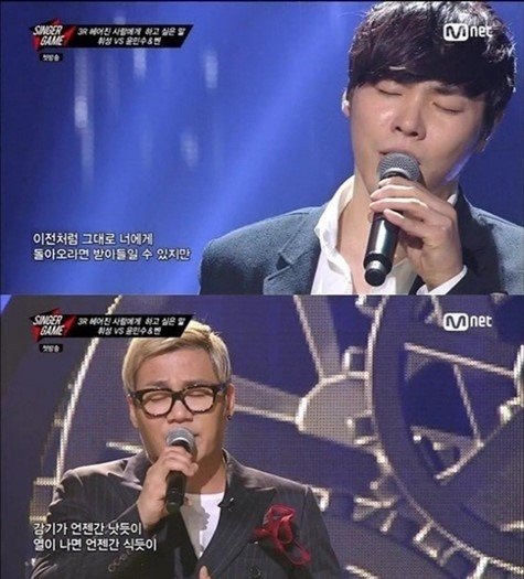 이날 3라운드 무대는 윤민수와 휘성이 나서 ‘헤어진 사람에게 하고 싶은 말’이라는 주제로 대결을 펼쳤다.