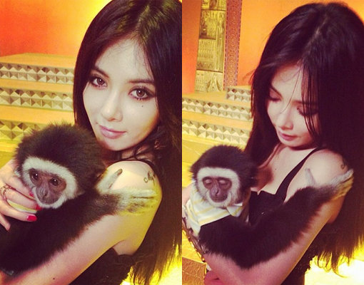공개된 사진에는 원숭이를 품에 안 채 카메라를 응시하고 있다. 특히 현아는 원숭이에게 각별한 애정을 쏟는 것으로 보여 눈길을 끈다. 또 이번 뮤직비디오에 함께 출연 댄서들과 단체사진을 찍으며 특별한 추억을 남겼다.