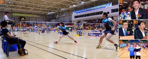 ‘이용대 올림픽제패기념 2014 화순전국학교대항 배드민턴선수권대회’가 24일 전남 화순 하니움문화스포츠센터에서 화려한 막을 올렸다. 1. 선수들이 각 코트에서 치열한 대결을 펼치고 있다. 2. 이용대가 개회식 전 대회 브로셔를 들고 환한 표정으로 웃고 있다. 3. 구충곤 화순군수가 개회식에서 환영사를 낭독하고 있다. 4. 신계륜 대한배드민턴협회장은 축사를 전하고 있다. 5. 선수대표 및 꿈나무들이 페어플레이를 다짐했다. 화순|김종원 기자 won@donga.com 트위터 @beanjjun