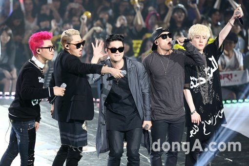 다이나믹듀오와 블락비가 24일 오후 경기도 고양시 일산서구 고양체육관에서 열린 Mnet ‘엠카운트다운’(이하 엠카) 10주년 특집 생방송 공개현장에서 멋진 공연을 하고 있다.
