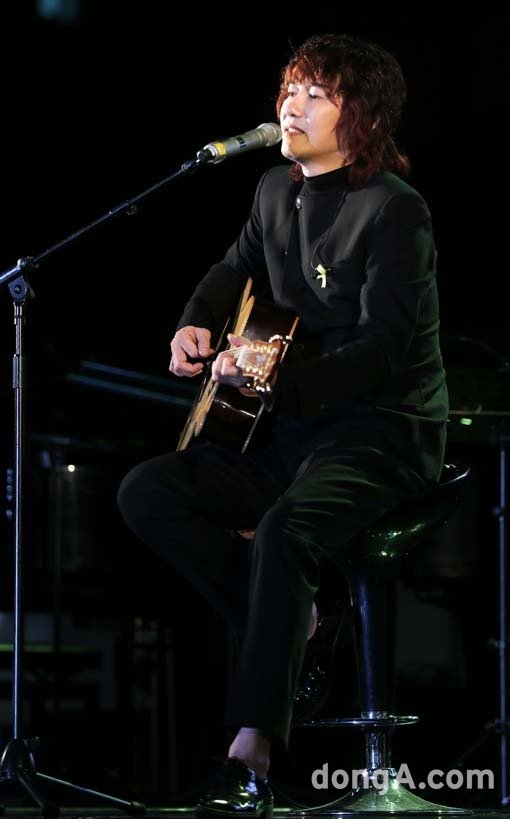 가수 김장훈이 세월호 참사 100일째인 24일 서울광장에서 열린 세월호 참사 100일 추모 시낭송 그리고 음악회 '네 눈물을 기억하라'에서 시민들과 함께 노래를 부르고 있다.