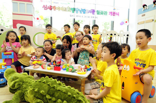 신세계그룹은 25일 초록우산 어린이재단과 함께 전남 여수시 시청동 직장어린이집에 위치한 신세계이마트 희망장난감도서관 여수관 개관식(사진)을 열고 “20호점인 여수관 개관을 계기로 매년 10여관씩 전국에 100개관을 구축할 계획”이라고 밝혔다.