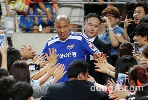 25일 오후 서울월드컵경기장에서 열린 '우리은행 K리그 올스타 with Team 박지성'에서 차두리가 팬들의 환호를 받으며 그라운드로 들어서고 있다.