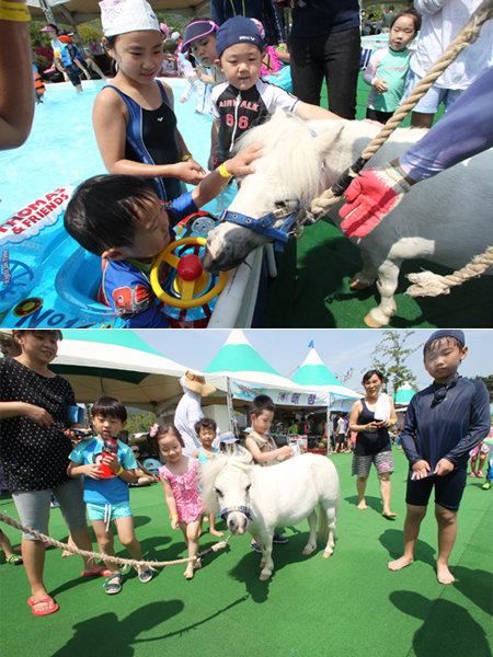이날 워터파크를 찾은 고객들은 ‘바우’가 나타나자 폭발적인 반응을 보였다. 특히 어린이들은 ‘바우’를 직접 만져보면서 “귀여워” “신기해”를 연발했다.