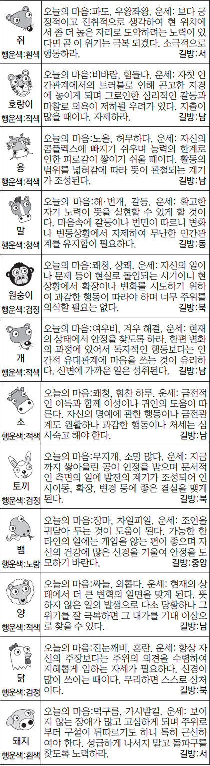 금일 주식, 부동산 매도 행운의 띠: 호랑이,말,개