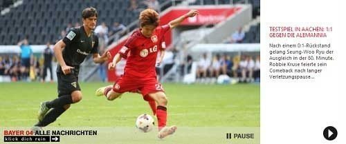 이날 레버쿠젠은 전반 30분만에 데마이에게 실점해 리드를 내줬다. 레버쿠젠은 후반전에 류승우와 스테판 키슬링을 교체 투입해 변화를 꾀했고 류승우가 패배를 면하는 귀중한 골을 넣은 것.