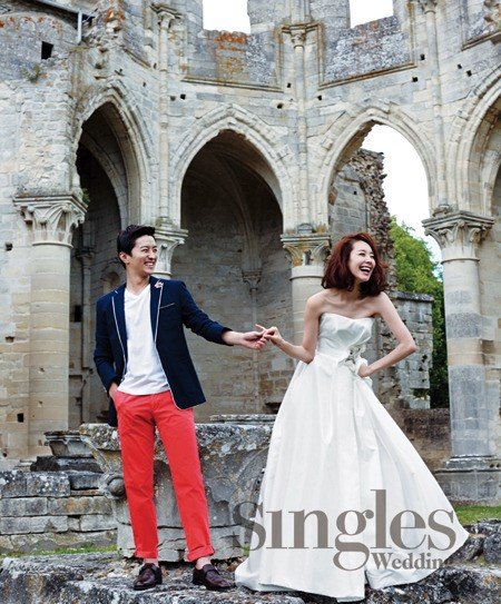 웨딩 매거진 ‘싱글즈웨딩’은 29일 인교진 소이현 커플과 촬영한 웨딩화보를 소개했다.