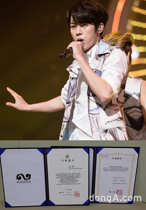 공개된 사진에는 인피니트 팬들이 사회단체에 기부해 수여 받은 증서가 담겨 있다. 우선 이들이 한 사회단체에 기부한 액수는 약 380만 원으로 작지 않은 금액이다. 또 팬들은 다른 곳을 통해 1100여 권의 도서도 전달해 성열을 흐뭇하게 했다.