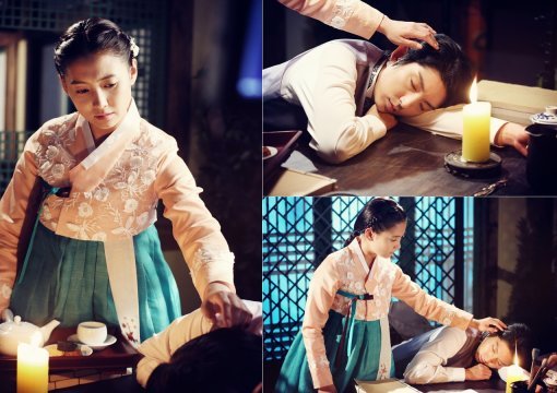 이날 사진에서 정수인은 한쪽 팔을 베고 잠들어 있는 박윤강(이준기)의 머리칼을 쓸어 넘기며 그를 애절한 시선으로 바라보고 있다. 윤강의 존재를 알고도 이를 숨기며 여인으로서 감내하기 힘든 고통도 참아내는 깊고 넓은 사랑이 수인의 얼굴에 고스란히 담겨있다.