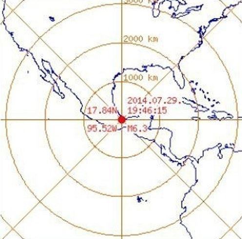 미국 지질조사국(USGS)은 29일(현지시각) "이날 오후 7시 46분쯤 멕시코 동부 베라크루스주의 후안 로드리게스 클라라 북부 지역에서 남서쪽으로 19km 떨어진 지역에서 규모 6.3의 지진이 발생했다"고 밝혔다.