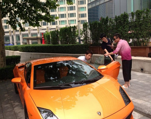 공개된 사진 속 이상엽은 오렌지색 람보르기니 가야르도와 함께 하고 있다. 이 사진은 중국 북경에서 영화 촬영 중인 이상엽의 모습을 포착한 것.