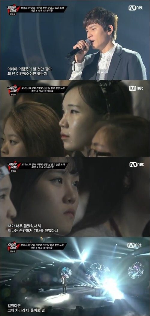 이어 그는 특유의 호소력 짙은 음색으로 아이유의 '나만 몰랐던 이야기'를 불렀다. 케이윌의 열창에 판정단들은 눈물을 흘리기도 했다.