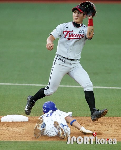 31일 대구 시민구장에서 열린 ‘2014프로야구’ 삼성 라이온즈와 LG 트윈스의 경기 삼성 1회말 1사 1루에서 3번 채태인 타석 때 1루주자 박해민이 2루도루에 성공하고 있다.