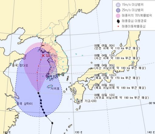 태풍 나크리 경로, 제주 영향권 들어… ‘5일 인천 상륙 예정’