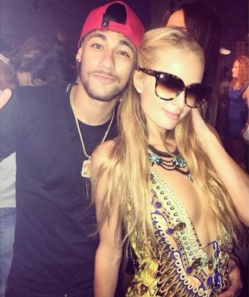사진 속 네이마르는 검은 티셔츠에 빨간색 모자를 쓰고 있고, 커다란 레오파드 무늬 선글라스를 낀 힐튼은 노출을 감행한 독특한 의상으로 매력을 뽐냈다.