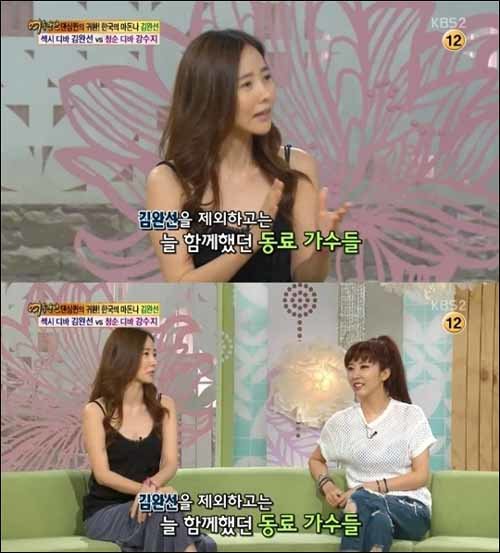 이날 김완선은 “강수지와 둘이서 방송 출연한 건 처음”이라고 말해 모두를 놀라게 했다.