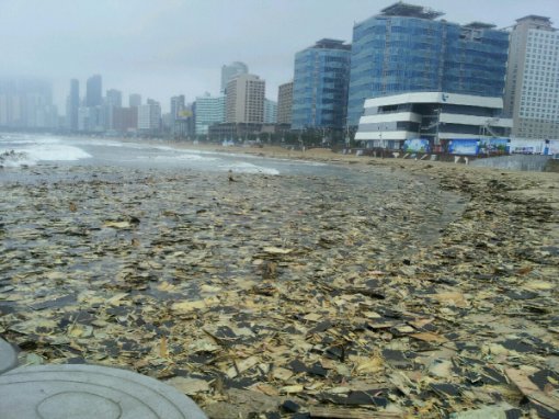부산 해운대구청에 따르면, 4일 오전 2시부터 해운대 해수욕장에 폐목재가 떠밀려와 지금까지 해수욕장 약 200m 구간을 덮었다.