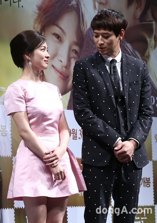 이날 송혜교는 강동원과의 호흡을 묻는 질문에 "4년 전 중편 영화 '러브 포 세일'에서 강동원과 호흡을 맞춘 바 있다"며 "그 때 이후 친분 유지를 잘하고 있다. 좋은 작품을 같이 하게 됐는데 그 영화 이후로는 사적으로 만났기 때문에 연기에 대한 열정을 몰랐다. 그런데 연기를 해보니 캐릭터나 연기에 대함 열정이 대단하더라"라고 칭찬했다.