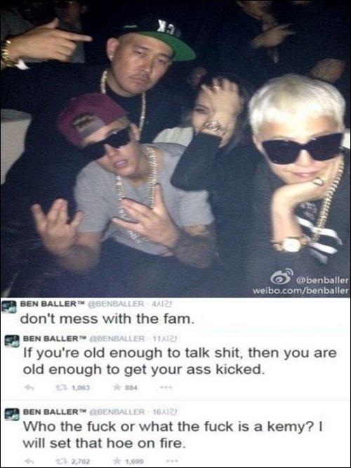 벤볼러는 3일 자신의 트위터에 "케미 그 애가 뭔데 확 불 싸질러 버릴까. 네가 그런 소리를 할 만큼 머리가 컸으면 맞아도 될 소리를 했다는 거 알겠네. 우리 팸한테 까불지 마"라는 글을 게재했다.